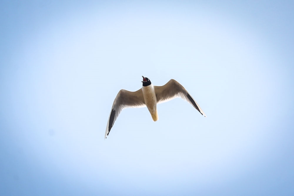 在盤錦市遼河口國家級自然保護區(qū)南小河保護站附近的濕地,黑嘴鷗在天空中飛翔(2022年6月17日攝)。新華社記者 潘昱龍 攝