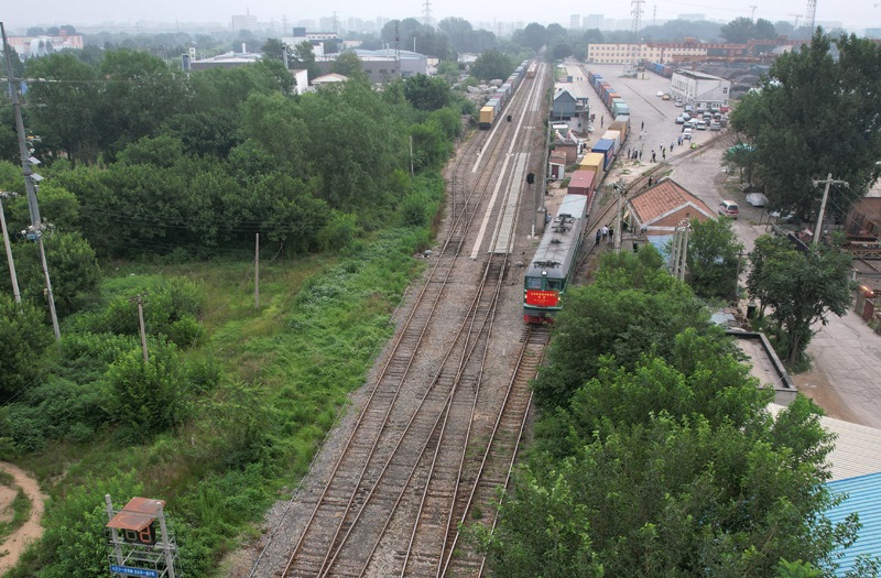 6月30日,北京至阿塞拜疆巴庫(kù)的跨里海中歐班列停靠在位于北京市房山區(qū)的北京國(guó)際陸港等待發(fā)車。