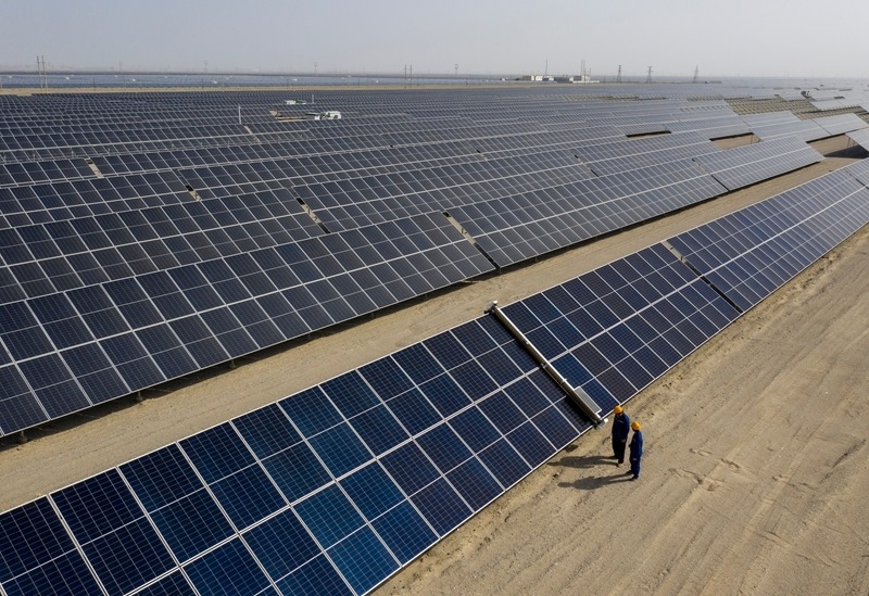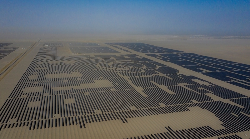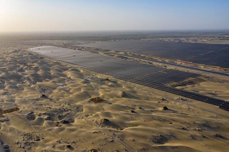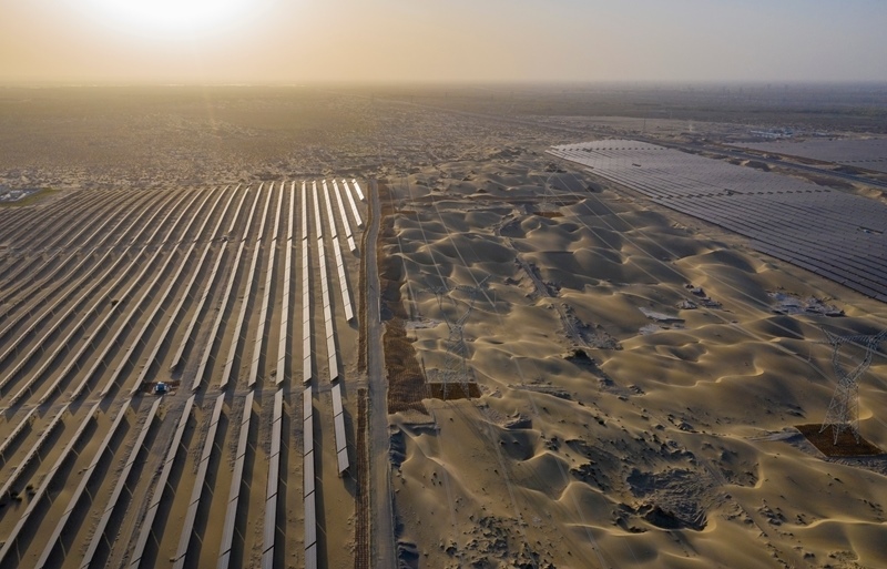 昔日的戈壁荒漠,如今由太陽能光伏板匯聚成“藍(lán)色海洋”,由風(fēng)力發(fā)電機組成“白色森林”,正孕育著無限“風(fēng)光”。