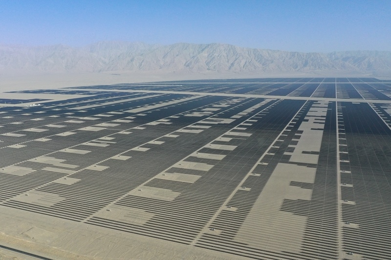 這是中國(guó)綠發(fā)新疆中綠電若羌400萬(wàn)千瓦光伏項(xiàng)目(6月26日攝,無人機(jī)照片)。