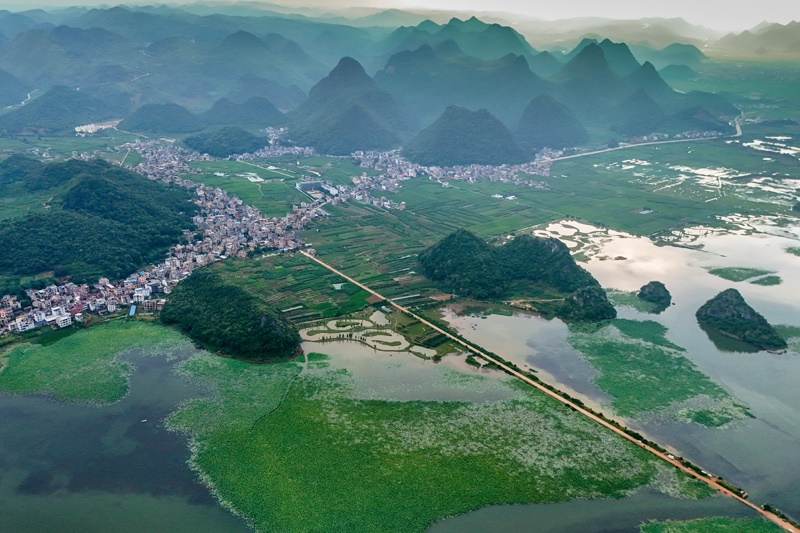 7月15日拍攝的普者黑景區(qū)風光(無人機照片)。