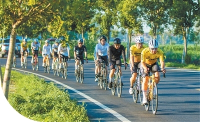 騎行愛好者在生態(tài)綠道上騎行。徐澤源攝