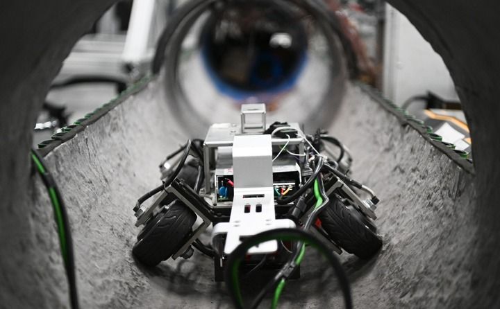 這是在深圳的廣東省具身智能機器人創(chuàng)新中心拍攝的管道檢測機器人(2025年6月25日攝)。新華社記者 鄧華 攝