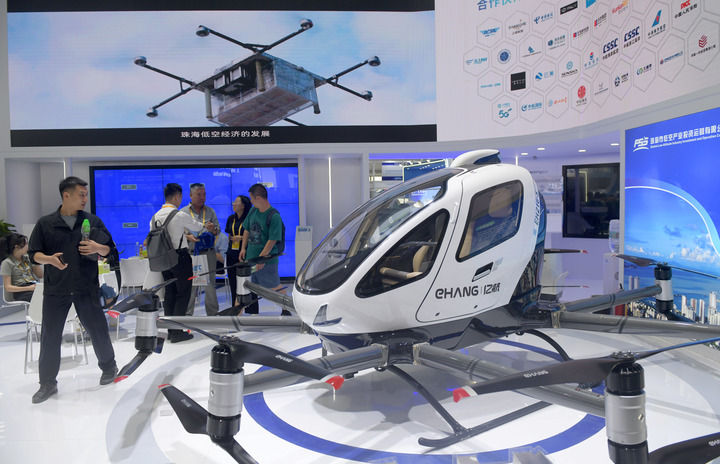這是在珠海航展上展示的億航智能EH216-S無人駕駛載人航空器(2024年11月13日攝)。新華社記者 盧漢欣 攝