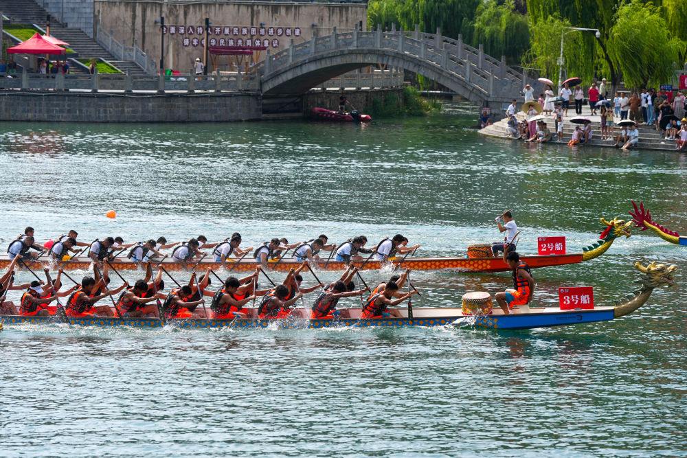 龍舟在本次世運(yùn)會上首次成為正式比賽項(xiàng)目,這也符合世運(yùn)會設(shè)項(xiàng)突出地域特色的特點(diǎn)。圖為貴州省黔東南苗族侗族自治州鎮(zhèn)遠(yuǎn)縣?陽河上的龍舟比賽。新華社發(fā)(龍建睿攝)