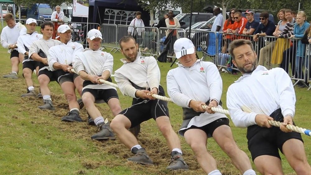 與人們平??吹降摹坝驳匕魏印辈煌肋\會上的拔河比賽是在室外天然草皮上進(jìn)行,也就是“草地拔河”。比賽實行8人制,像拳擊一樣分不同的重量級,全隊體重一旦“超重”,直接少一人上場。比賽使用的專業(yè)麻繩長達(dá)35米,周長12.5厘米,繩上中心點拉過己方4米標(biāo)記線即為獲勝。