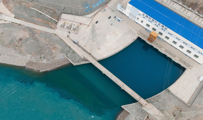 這是8月7日拍攝的阿爾塔什水電站(無人機(jī)照片)。