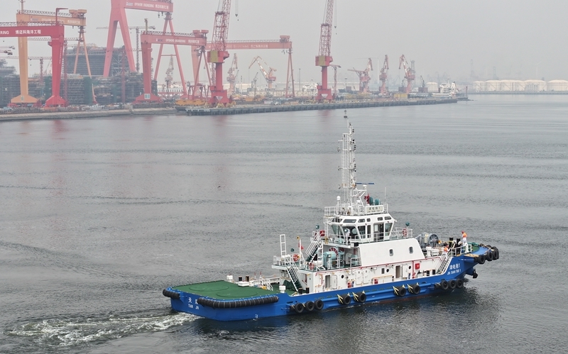 8月13日,由4艘純電動港作拖輪組成的“綠色艦隊”在中船天津碼頭鳴笛啟航。