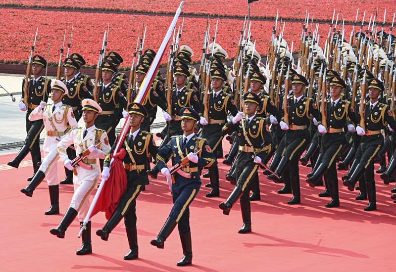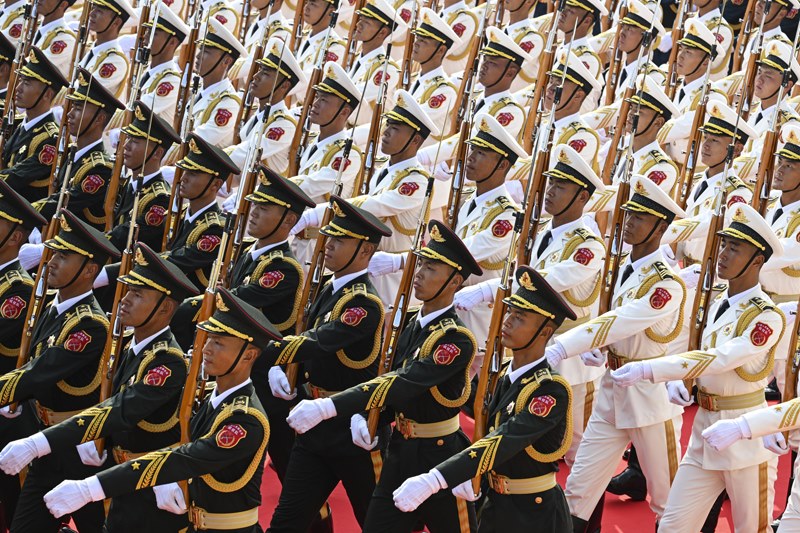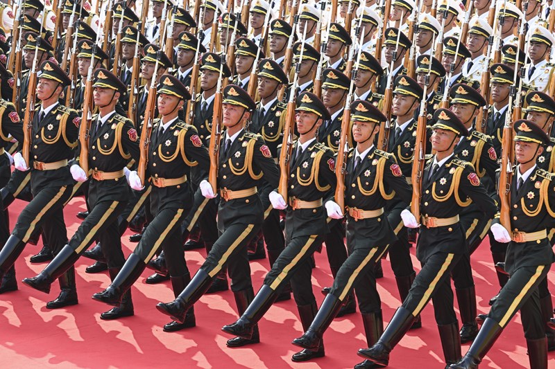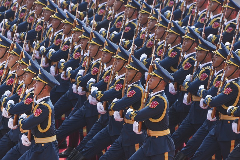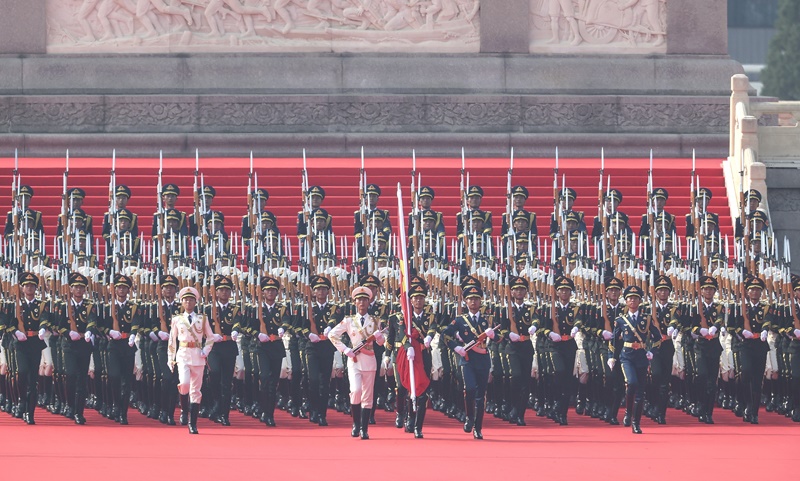 9月3日,紀(jì)念中國人民抗日戰(zhàn)爭(zhēng)暨世界反法西斯戰(zhàn)爭(zhēng)勝利80周年大會(huì)在北京隆重舉行。這是國旗護(hù)衛(wèi)隊(duì)在行進(jìn)中。