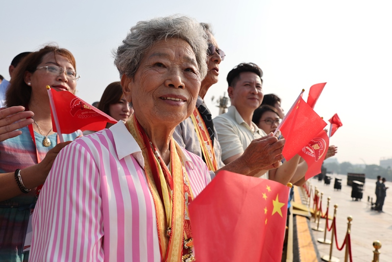9月3日,紀(jì)念中國人民抗日戰(zhàn)爭(zhēng)暨世界反法西斯戰(zhàn)爭(zhēng)勝利80周年大會(huì)在北京隆重舉行。這是來自香港的抗戰(zhàn)老兵林珍(前)。