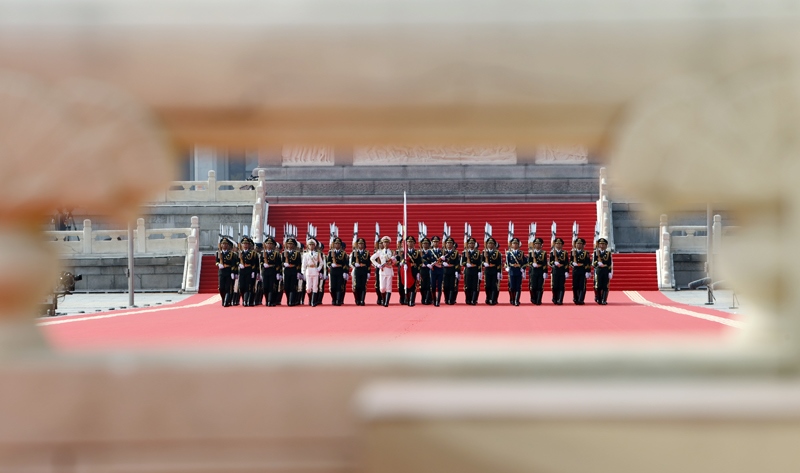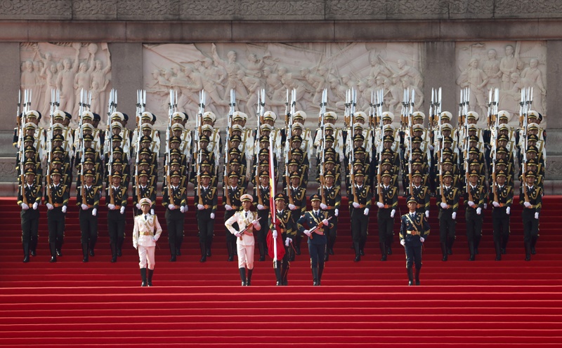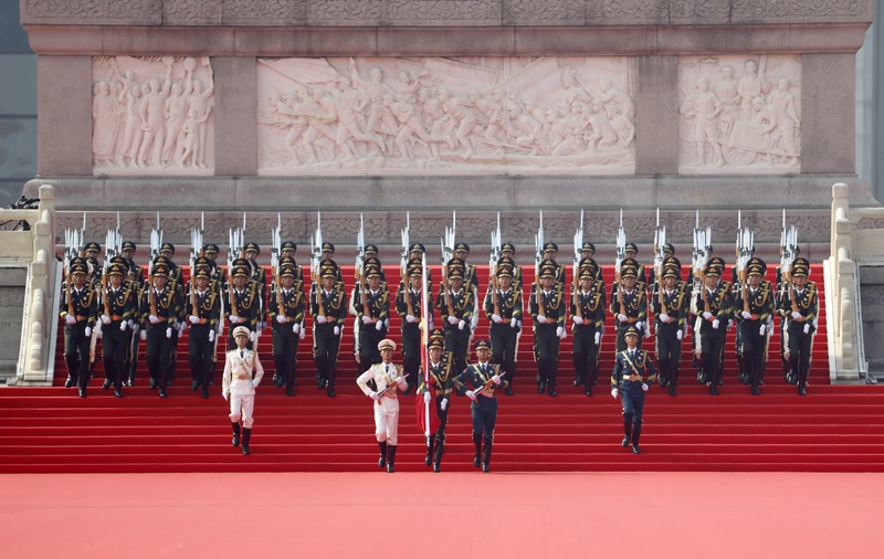 9月3日,紀(jì)念中國人民抗日戰(zhàn)爭(zhēng)暨世界反法西斯戰(zhàn)爭(zhēng)勝利80周年大會(huì)在北京隆重舉行。這是國旗護(hù)衛(wèi)隊(duì)官兵護(hù)衛(wèi)著五星紅旗,從人民英雄紀(jì)念碑行進(jìn)至廣場(chǎng)北側(cè)升旗區(qū)。