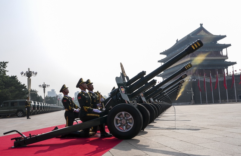 9月3日,紀(jì)念中國人民抗日戰(zhàn)爭(zhēng)暨世界反法西斯戰(zhàn)爭(zhēng)勝利80周年大會(huì)在北京隆重舉行。這是禮炮陣地。