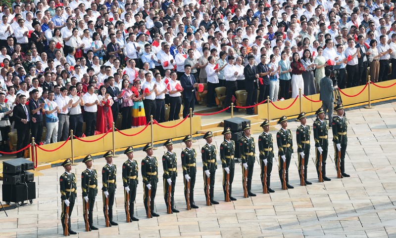 9月3日,紀(jì)念中國(guó)人民抗日戰(zhàn)爭(zhēng)暨世界反法西斯戰(zhàn)爭(zhēng)勝利80周年大會(huì)在北京隆重舉行。這是標(biāo)兵和觀禮嘉賓。
