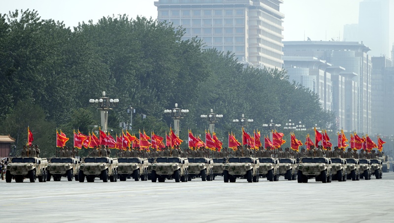 9月3日,紀(jì)念中國(guó)人民抗日戰(zhàn)爭(zhēng)暨世界反法西斯戰(zhàn)爭(zhēng)勝利80周年大會(huì)在北京隆重舉行。這是信息支援部隊(duì)方隊(duì)接受檢閱。