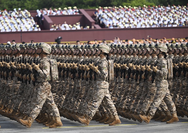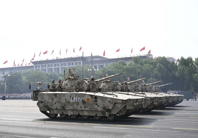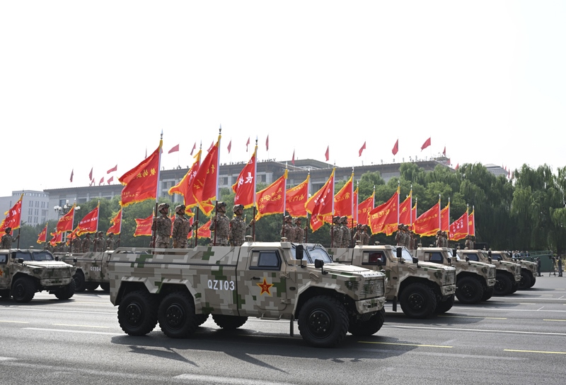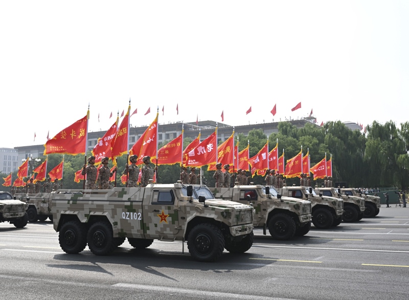 9月3日,紀(jì)念中國(guó)人民抗日戰(zhàn)爭(zhēng)暨世界反法西斯戰(zhàn)爭(zhēng)勝利80周年大會(huì)在北京隆重舉行。這是地面突擊方隊(duì)接受檢閱。