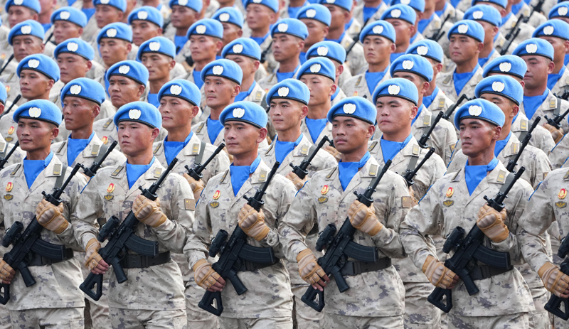 2025年9月3日,紀念中國人民抗日戰(zhàn)爭暨世界反法西斯戰(zhàn)爭勝利80周年大會在北京隆重舉行。這是維和部隊方隊接受檢閱。新華社記者 王建華 攝