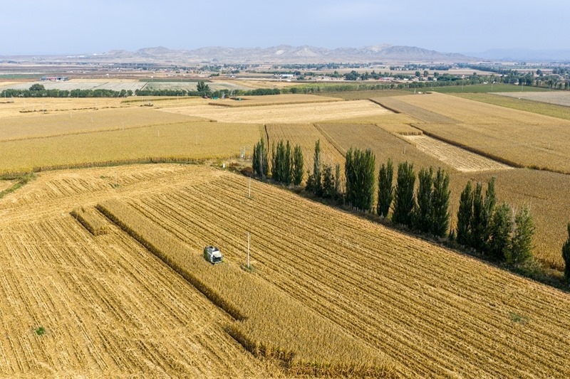 金秋時(shí)節(jié),內(nèi)蒙古巴彥淖爾市烏拉特前旗的玉米迎來(lái)豐收,當(dāng)?shù)貜V泛采用機(jī)械化收割與半自動(dòng)化烘干技術(shù),保障秋收效率。