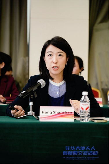 王玉娥的分享為駐華大使夫人打開(kāi)了陜西婦女事業(yè)的“全景圖”,女性代表、西安宏源視訊設(shè)備有限責(zé)任公司CEO黃姍姍,“愛(ài)心媽媽”代表、西安市蓮湖區(qū)艾樂(lè)生社會(huì)工作服務(wù)中心主任韋艾辰的發(fā)言,則是這幅圖景中最鮮活的“特寫(xiě)鏡頭”。