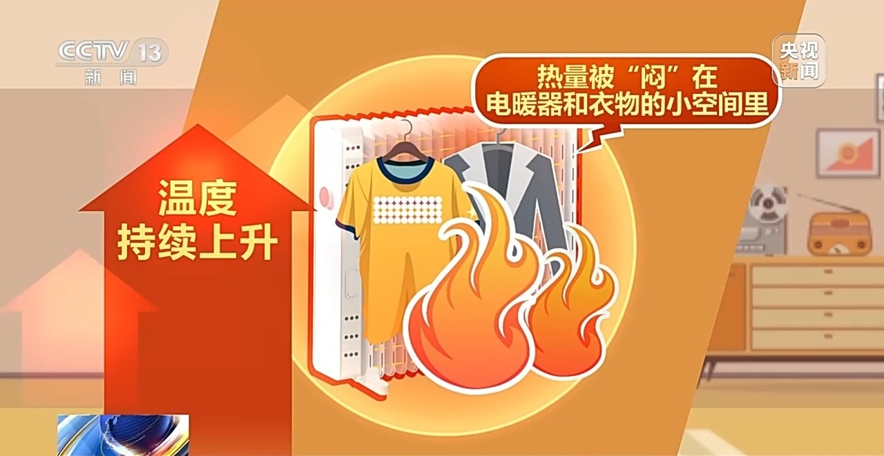 很多人喜歡把衣物放在電暖氣上烤,這是有風(fēng)險(xiǎn)的!因?yàn)檫@樣會(huì)導(dǎo)致熱量被“悶”在電暖器和衣物的小空間里,形成一個(gè)“小烤箱”溫度持續(xù)上升,可能引燃衣物導(dǎo)致火災(zāi)。