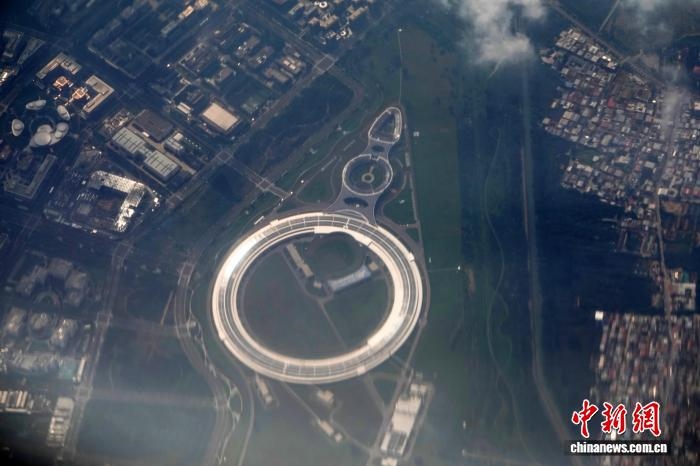 2025年8月30日,客機(jī)飛過(guò)北京懷柔科學(xué)城時(shí),航拍高能同步輻射光源(HEPS)大科學(xué)裝置。中新網(wǎng)記者 孫自法 攝