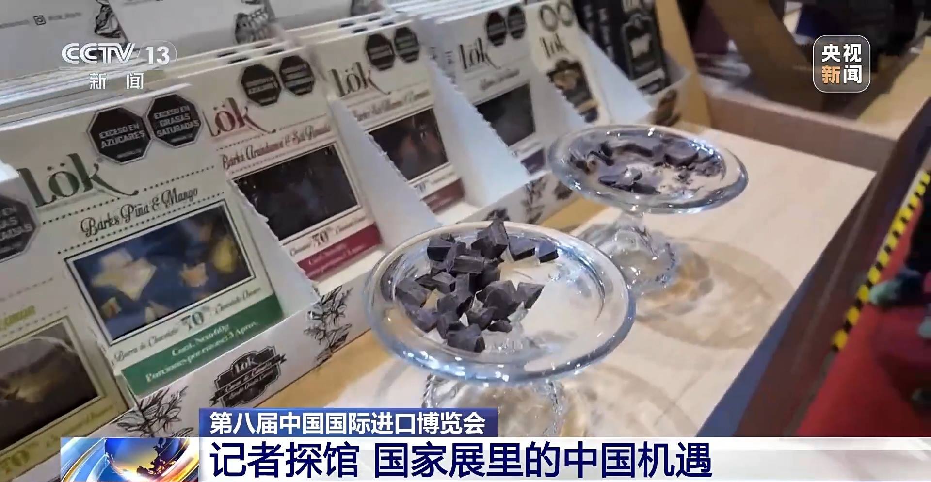 總臺央視記者 宋菀:在剛剛逛展的過程中,我發(fā)現(xiàn)國家館不僅好看、好聽,還好吃,不少展臺上都擺放著當?shù)氐拿朗彻┯^眾品嘗。如果要選最香的,我會推薦你去哥倫比亞的展臺。來到這里,咖啡的濃香占據(jù)了全部味蕾,再配上巧克力的苦中帶甜,別有一番滋味。