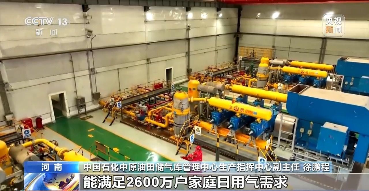 中國(guó)石化中原油田儲(chǔ)氣庫(kù)管理中心生產(chǎn)指揮中心副主任 徐鵬程:入冬前,中原油田儲(chǔ)氣庫(kù)群完成注氣儲(chǔ)備9.4億立方米,較去年多儲(chǔ)備1.2億立方米,達(dá)到歷史最高水平。在用氣高峰期,能滿足2600萬(wàn)戶家庭的日用氣需求。