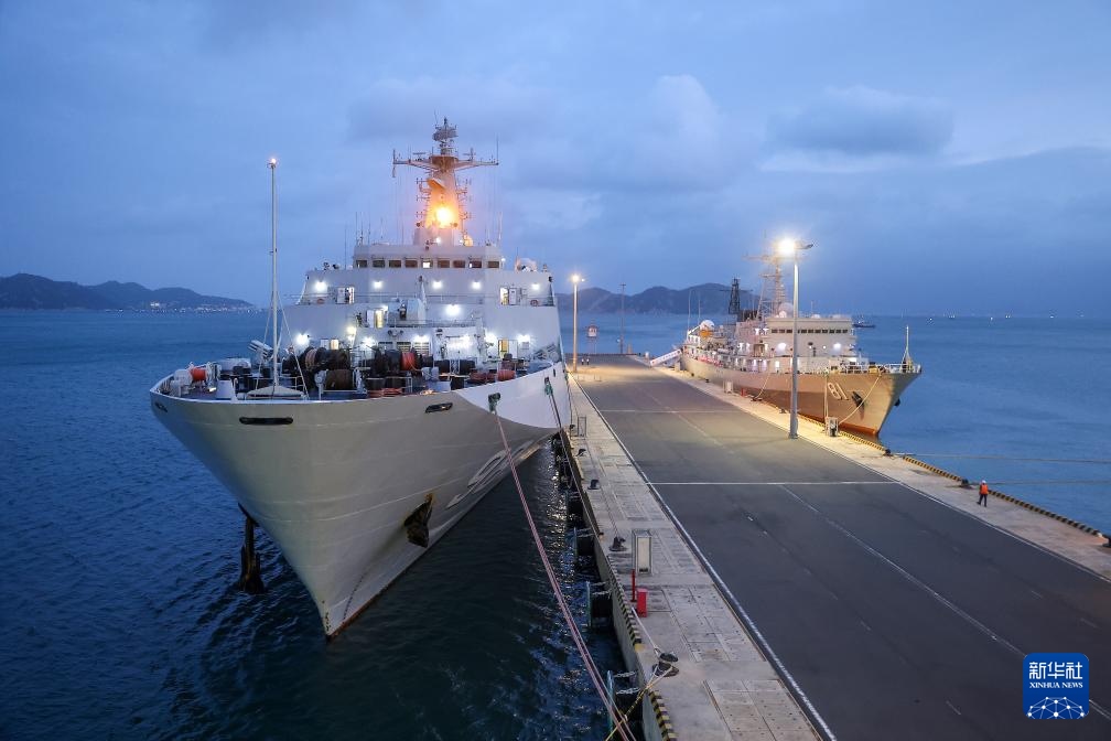 11月24日,中國海軍長白山艦和鄭和艦夜泊越南金蘭港碼頭。新華社發(fā)(呂志浩攝)