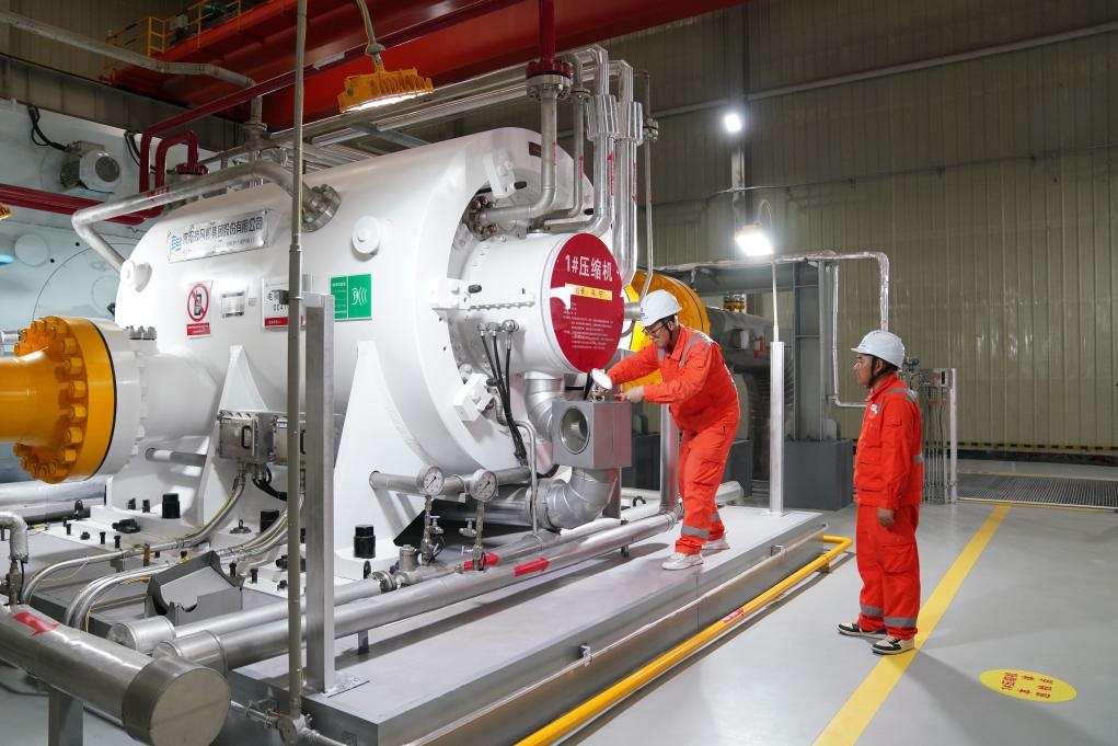 2025年7月9日,在“北氣南下”能源大通道黑河首站壓縮機(jī)房,綜合維修工人對(duì)壓縮機(jī)關(guān)鍵儀表進(jìn)行維修作業(yè)。新華社記者 王松 攝
