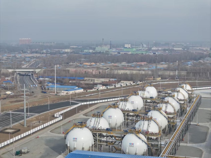 圖為中能建松原氫能產(chǎn)業(yè)園項(xiàng)目的氫儲罐。新華每日電訊記者 姚湜攝