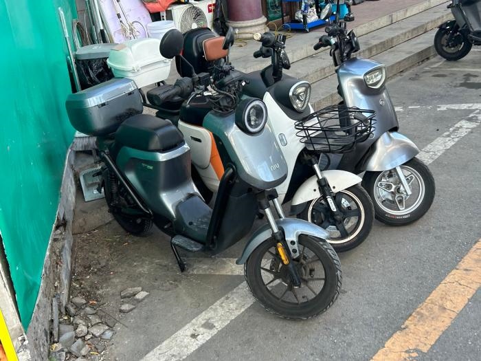 門店閑置的現(xiàn)象并非個例,在呂營大街和周邊道路,記者前后走訪了七家不同品牌的電動車門店。其中,極核、臺鈴、九號和小牛電動車門店內(nèi)都沒有新車售賣。愛瑪電動車門店內(nèi)只有一輛樣車,新日和雅迪電動車門店里的樣車數(shù)量多一些,但如果按型號算,新日目前僅有兩種型號的電動車在售,雅迪則是三種。同樣的品牌,不同位置的門店,進(jìn)貨情況會有所不同。比如在朝陽門北小街的另一家臺鈴電動車門店,就有新車在售,但也只有一款。