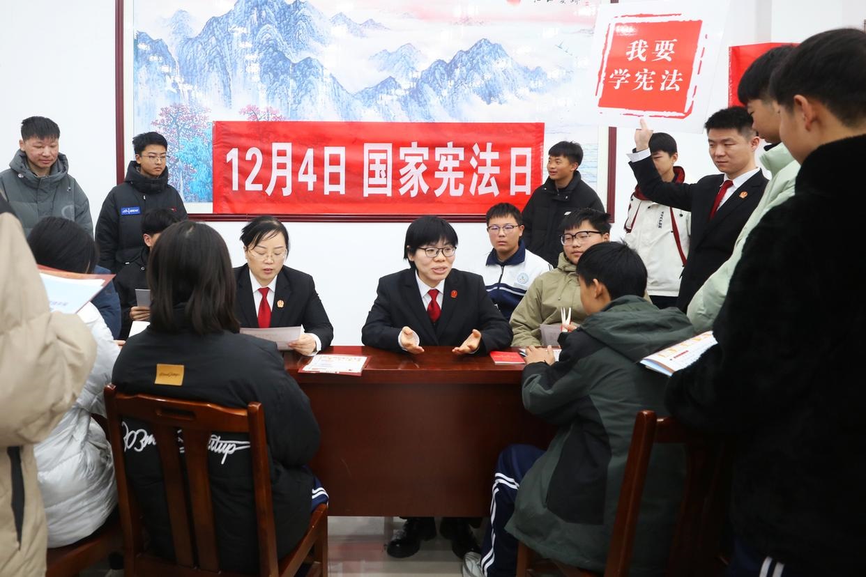12月3日上午,河南省安陽(yáng)縣人民法院組織干警深入轄區(qū)安陽(yáng)縣職業(yè)中等專業(yè)學(xué)校,開(kāi)展了一場(chǎng)以“憲法是青春的必修課 ‘憲’給你一生的守護(hù)”為主題的憲法知識(shí)進(jìn)校園普法宣傳活動(dòng)。(工人日?qǐng)?bào)通訊員 黃憲偉 攝)