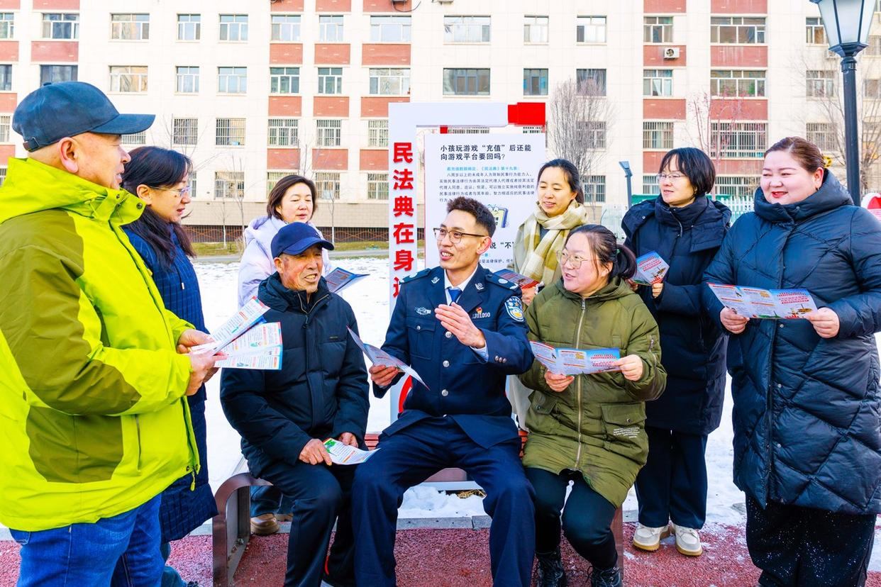 12月2日,新疆烏魯木齊市天山區(qū)幸福路街道天?;▓@社區(qū)組織黨員和志愿者上門為商戶和居民宣講憲法知識(shí)、發(fā)放憲法知識(shí)手冊(cè)、提供法律咨詢等多種形式,推動(dòng)憲法宣傳教育深入人心。(工人日?qǐng)?bào)通訊員 孫振嵩 攝)