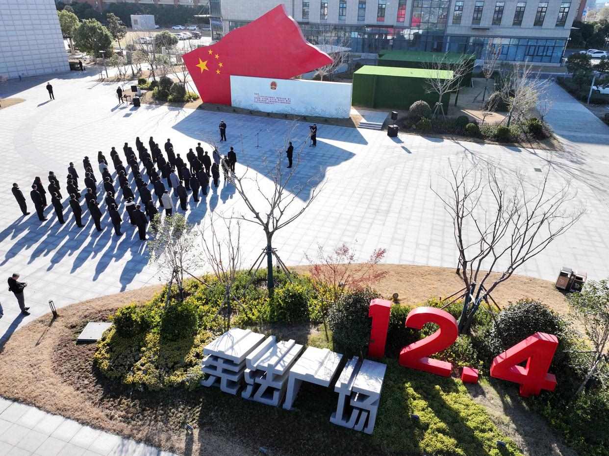 12月3日,江蘇省連云港市連云區(qū)司法局組織司法人員在連云區(qū)憲法廣場(chǎng)開(kāi)展“12·4”憲法宣誓暨法律宣傳活動(dòng)。(工人日?qǐng)?bào)通訊員 王春 攝)