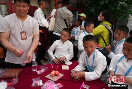 6月1日下午,孩子們來(lái)到了位于北京蒙藏學(xué)校舊址的中華民族共同體體驗(yàn)館。蒙藏學(xué)校是近代第一所少數(shù)民族專門學(xué)校。在中華工藝美術(shù)體驗(yàn)空間,孩子們跟著老師一起捏“石榴”;觀看演出時(shí),孩子們與前來(lái)參加演出的民族藝術(shù)家們一起載歌載舞。