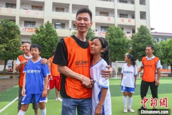 “今天第一次和爸爸踢球,我特別高興和感動(dòng)。他踢得很好,還帶球過了我?guī)状巍N蚁M职忠院竽芏嗯阄姨咔??!?4日,在江西贛州尋烏縣澄江中心校的足球場上,來自該校晨曦女子足球隊(duì)的隊(duì)員廖怡菱和其他四位隊(duì)員在父親節(jié)前夕,驚喜地見到了自己身在外地工作的父親,并第一次和父親一起踢球,進(jìn)行了一場特別的親子足球賽。