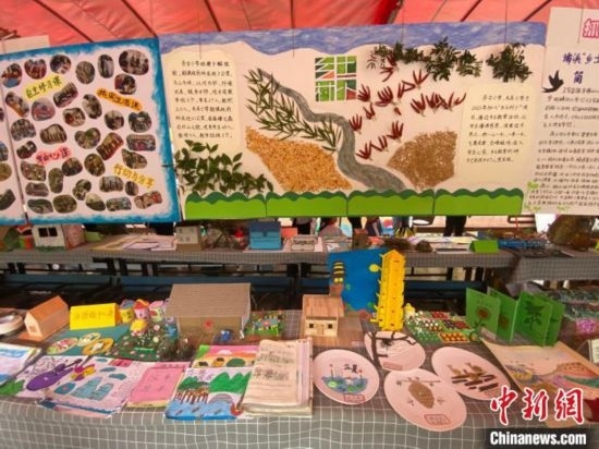 本次活動(dòng)展出作品近700件,作品涵蓋圖繪、泥塑、詩(shī)歌、立體卡紙、多種鄉(xiāng)土材料的立體及平面作品創(chuàng)作、自制故事繪本等多種形式,作品內(nèi)容涉及家譜、家鄉(xiāng)地形、家鄉(xiāng)動(dòng)植物、家鄉(xiāng)美食、家鄉(xiāng)名人、家鄉(xiāng)建筑等鄉(xiāng)土文化主題。這些作品在創(chuàng)作過(guò)程中并沒(méi)有經(jīng)過(guò)老師們的干預(yù),都是鄉(xiāng)村兒童在觀(guān)察體驗(yàn)自己身邊的鄉(xiāng)土資源與文化后進(jìn)行的自主創(chuàng)作。