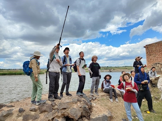 大同思政實踐團(tuán)成員在桑干河岸觀察地質(zhì)地貌。
