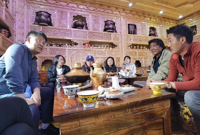 甘孜思政實踐團(tuán)走進(jìn)藏民家中訪談?wù){(diào)研。