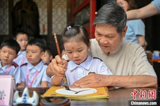 游泮入學(xué)、孝親敬師、點(diǎn)智破蒙、名師開(kāi)筆......廣州市越秀區(qū)朝天小學(xué)港澳子弟班的一年級(jí)新生,28日在廣州舉行開(kāi)筆禮。廣州市越秀區(qū)朝天小學(xué)校長(zhǎng)孔虹表示,希望通過(guò)學(xué)校開(kāi)設(shè)的傳統(tǒng)文化課程,讓港澳學(xué)生感受祖國(guó)博大精深的文化。