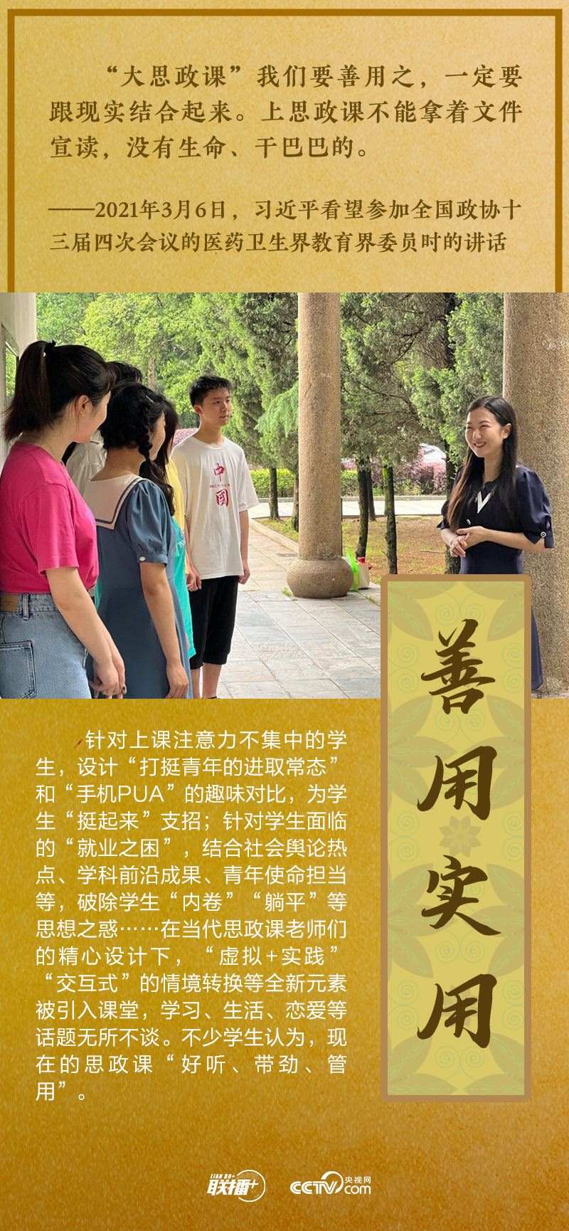 “上思政課不能拿著文件宣讀,沒有生命、干巴巴的”“要善于利用國內外的事實、案例、素材,在比較中回答學生的疑惑”“要運用新媒體新技術使工作活起來”“讓思政課成為一門有溫度的課”……辦好思政課,總書記一向十分關心。