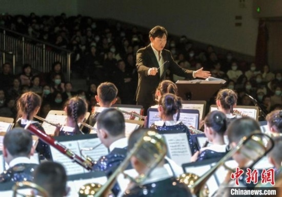 “龍行龘龘 樂動(dòng)童年”2024年交響管樂新年音樂會(huì)在烏魯木齊市青少年宮舉辦。中新網(wǎng)記者 劉新 攝
