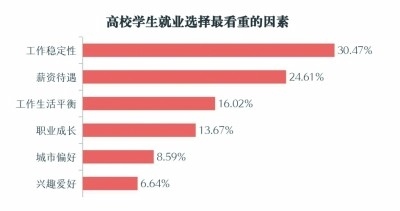 對我國東、中、西部地區(qū)7個(gè)省區(qū)市的14所本科院校、4所??圃盒?,覆蓋研究生、本科生、??粕惾后w,隨機(jī)抽樣的1829份調(diào)查問卷顯示,除工作穩(wěn)定性、薪資待遇外,工作生活平衡、職業(yè)成長、所在城市、興趣愛好等,也是高校學(xué)生就業(yè)選擇時(shí)看重的因素。