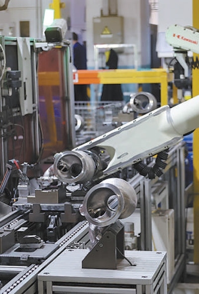 江蘇無錫職業(yè)技術學院教師團隊為蠡湖增壓技術公司研發(fā)的殼體機器人自動化去毛刺工作站正在作業(yè)。無錫職業(yè)技術學院黨委宣傳部供圖