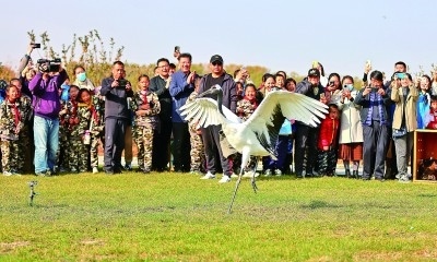 在河北秦皇島市鴿子窩公園,國家保護(hù)鳥類被放歸自然時,市民紛紛拍照記錄。新華社發(fā)