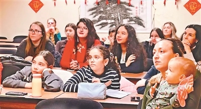 在哥斯達(dá)黎加,“中國文化論壇——春節(jié)傳統(tǒng)漫談”專題講座在哥斯達(dá)黎加大學(xué)舉辦。本土中文教師艾蓮娜從生肖蛇的寓意和春節(jié)的起源講起,詳細(xì)介紹了春節(jié)的禮俗以及相關(guān)的文化知識(shí)。