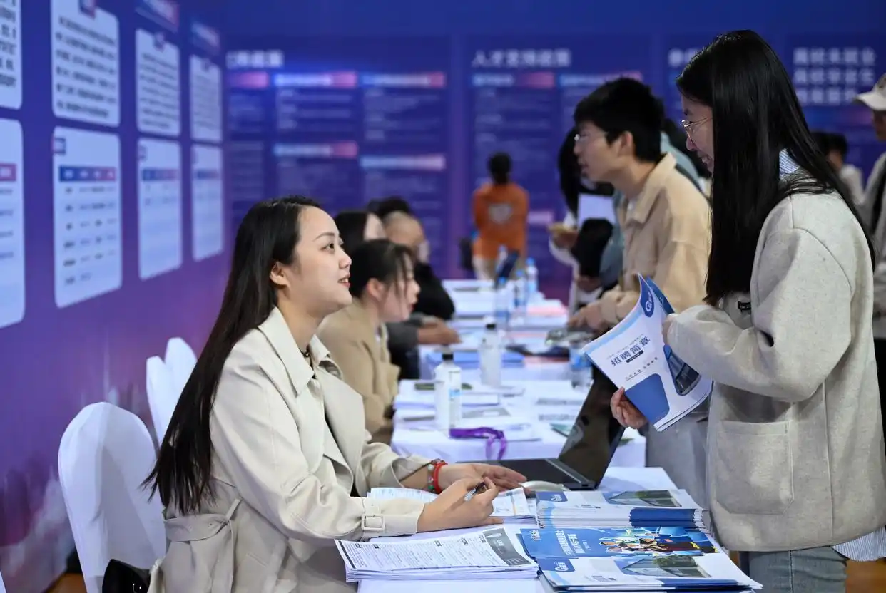3月20日,環(huán)渤海城市聯(lián)合招聘高校畢業(yè)生春季專場(chǎng)活動(dòng)在天津職業(yè)技術(shù)師范大學(xué)啟動(dòng),來自環(huán)渤海地區(qū)400多家企業(yè)提供崗位1.1萬(wàn)個(gè)。活動(dòng)現(xiàn)場(chǎng)還設(shè)立就業(yè)服務(wù)臺(tái),為學(xué)生提供指導(dǎo)。圖為當(dāng)日,求職學(xué)生(右)和招聘方代表在招聘會(huì)現(xiàn)場(chǎng)交談。新華社記者 趙子碩攝