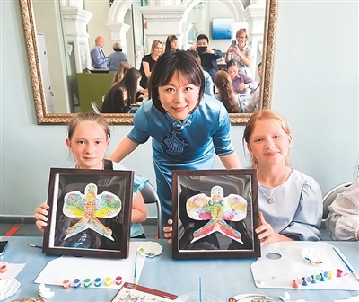 不久后的9月,“東方雅韻——中國文化藝術(shù)展”2.0版本及“天涯共此時”中秋文化體驗活動在西班牙馬德里中國文化中心舉辦。天津博物館首次將體驗工坊帶進馬德里社區(qū),當?shù)貎和跉g聲笑語中沉浸式感受中華傳統(tǒng)技藝,一位當?shù)嘏W⒌赜猛赜」ぞ邚?fù)刻楊柳青木版年畫,她指尖起落間,寓意吉祥的“連年有余”圖案逐漸清晰。工坊結(jié)束后,大家拿著自己拓印的團扇、親手捏制的中秋兔子與老師合影,還放飛了自己動手著色的迷你風箏。