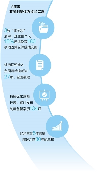 3張“零關稅”清單、企業(yè)和個人15%所得稅、加工增值貨物內銷免關稅等180多項政策文件落地實施;外商投資準入負面清單縮減為27項、全國最短……隨著營商環(huán)境持續(xù)優(yōu)化,海南吸引了各類經(jīng)營主體投資創(chuàng)業(yè)。據(jù)介紹,海南經(jīng)營主體5年增量超過之前30年的總和。