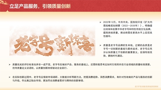 《報告》建議,在實(shí)際創(chuàng)新過程中,老字號應(yīng)借助市場調(diào)研、大數(shù)據(jù)分析等新方法,把握消費(fèi)趨勢、洞悉消費(fèi)需求,有針對性地做好產(chǎn)品與服務(wù)的創(chuàng)新與升級,作出真正貼合市場、更加符合消費(fèi)者需求與期待的創(chuàng)新舉措。