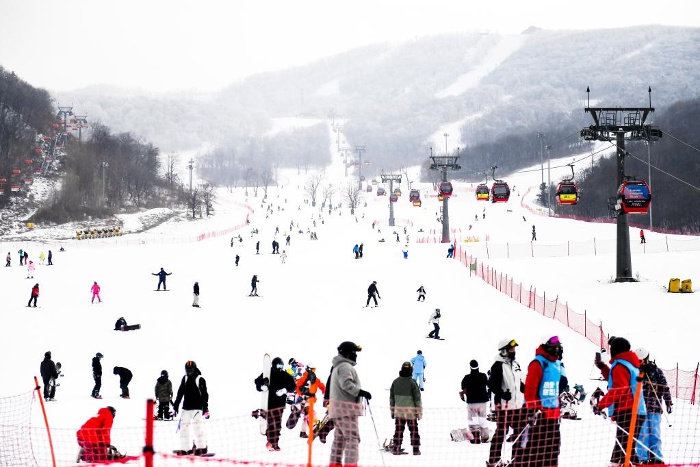 1月23日,滑雪愛好者在吉林市萬科松花湖度假區(qū)滑雪。新華社記者 許暢 攝